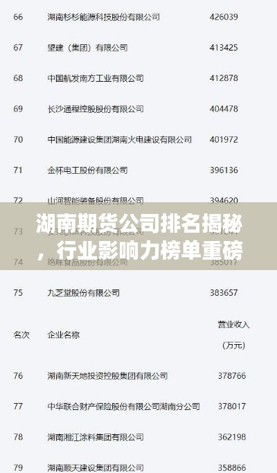 湖南期货公司排名揭秘,行业影响力榜单重磅出炉!