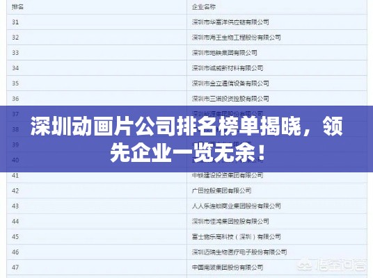 以下是根据公司规模、作品质量、市场影响力等综合因素评选出的深圳动画片公司排名榜: