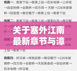 塞外江南的最新章节在文化层面可能代表着当地的发展动态、社会变迁以及人与自然和谐共生的理念,随着时代的变迁,塞外江南的故事也在不断更新,其文化内涵不断丰富,要深入了解其最新章节,可以通过阅读相关文学作品、参观当地历史遗迹、走访当地居民等方式,获取第一手资料,理解当地的文化变迁。