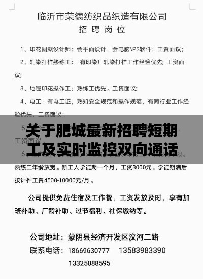 肥城最新招聘短期工及实时监控双向通话是当前的热门话题,公众应了解相关知识和风险,采取合适的措施,确保自己的权益和数据安全。